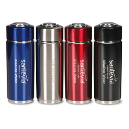 Obtii beneficiile unei apepurificata, alcalinizata, ionizata si mineralizata oriunde te deplasezi avand cutine un termos Santevia® Energy Flask